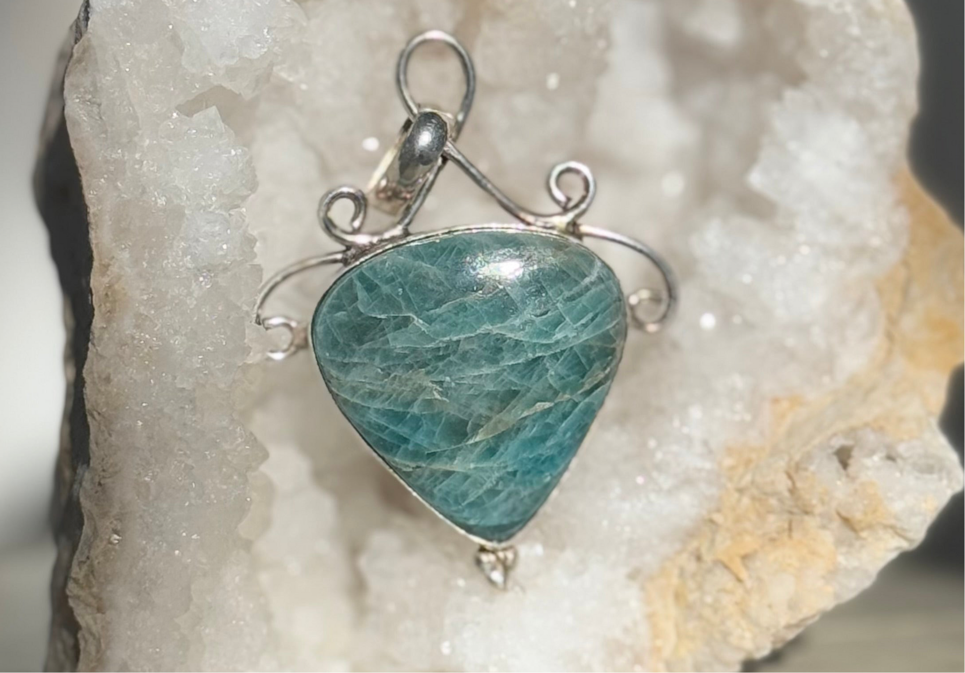 Handmade, All Natural Stone, Silver over Copper Pendant.