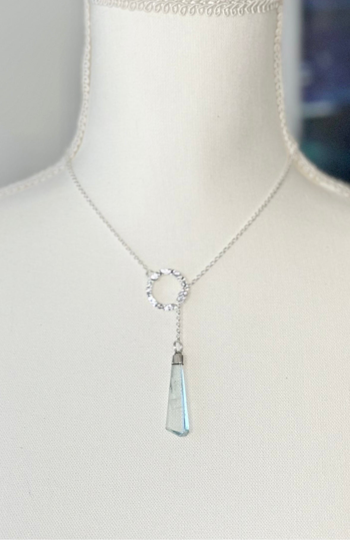 .925 Sterling Silver Lariat Necklace with Aquamarine