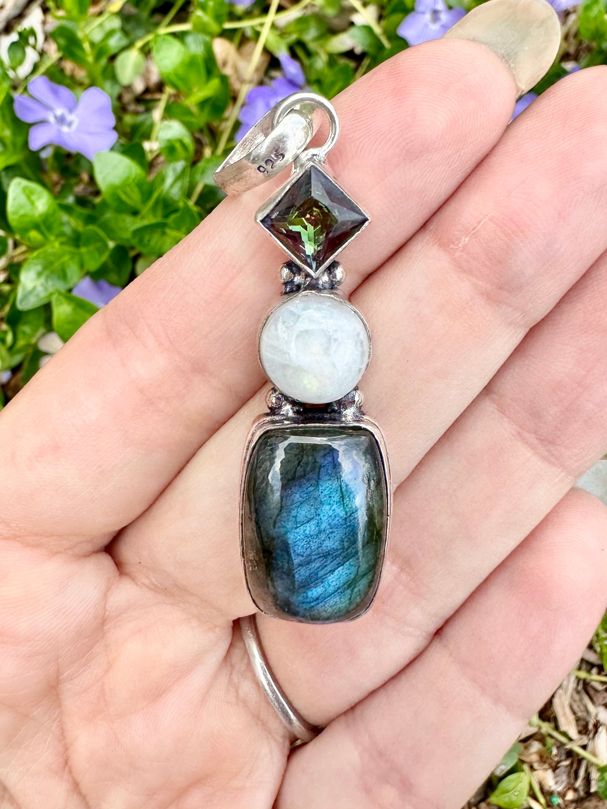 Silver Mystic Topaz, Moonstone & Labradorite Pendant
