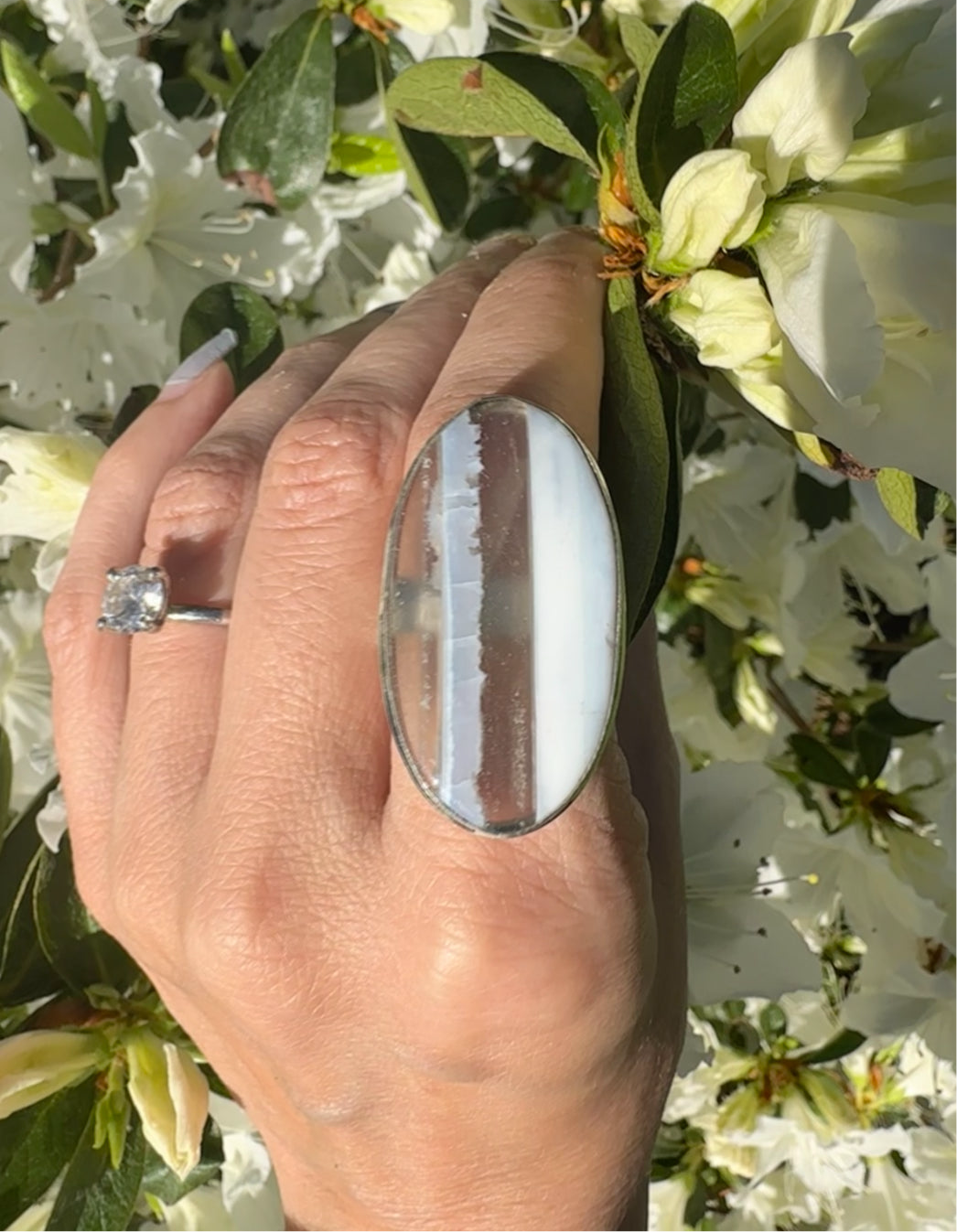 Silver Blue Owhee Opal Ring Size 8